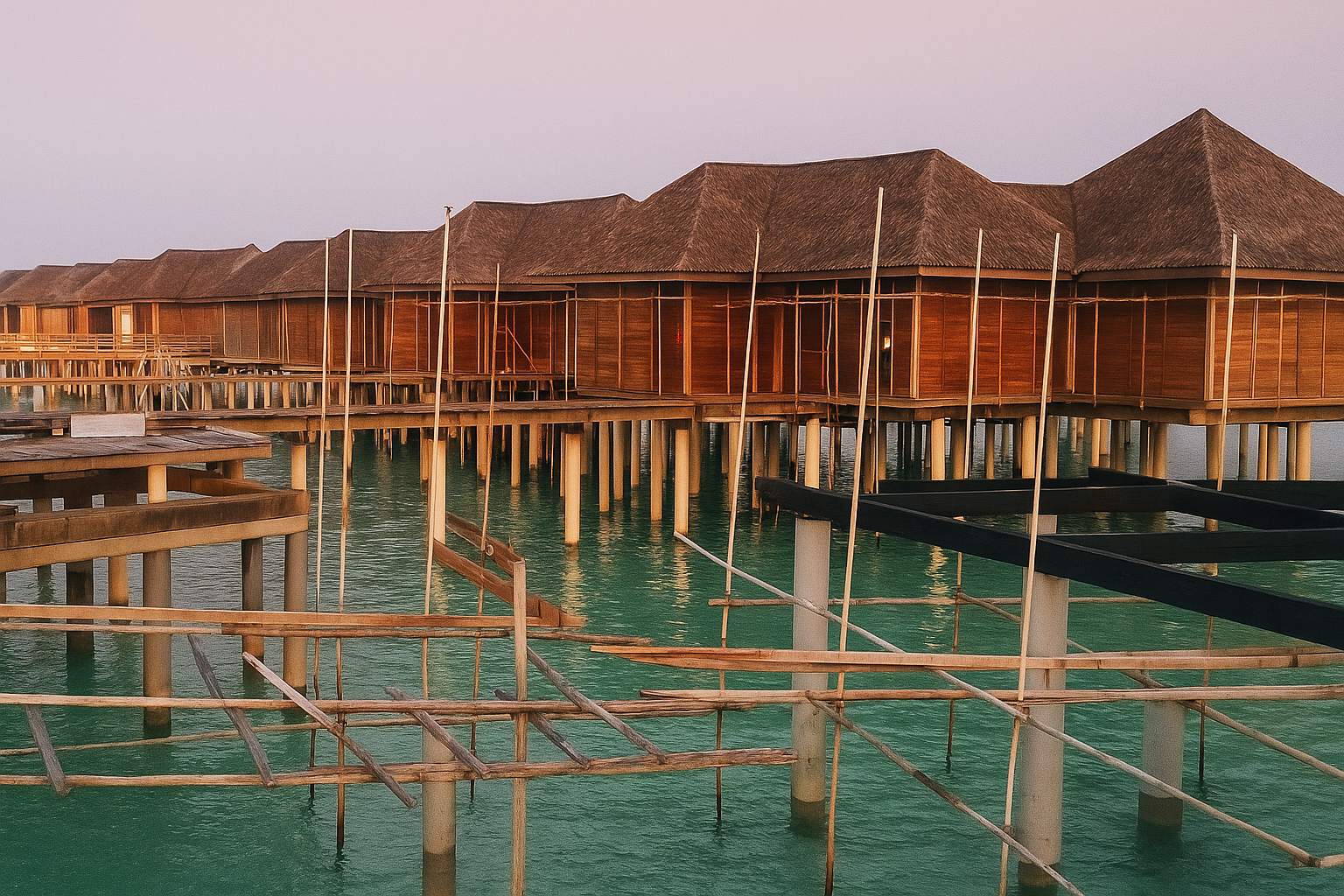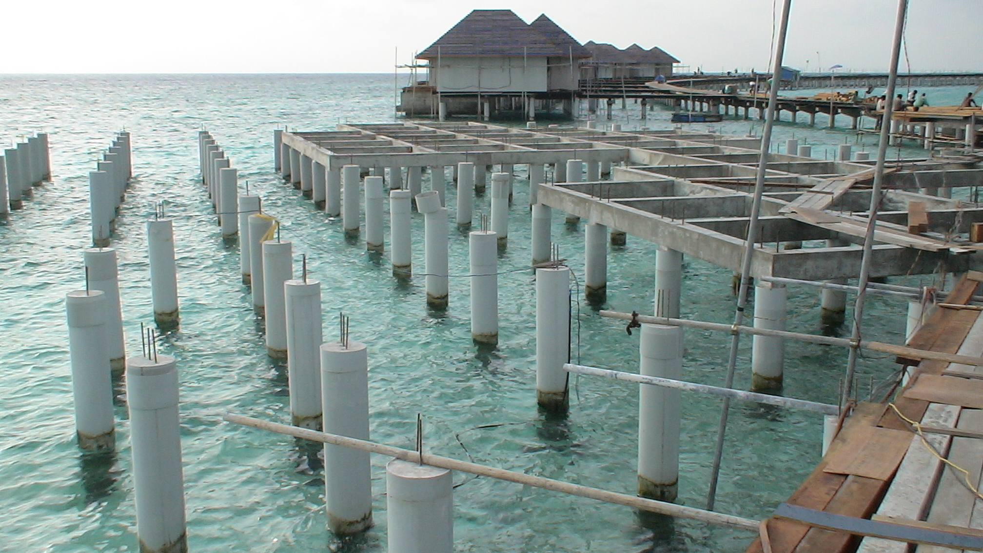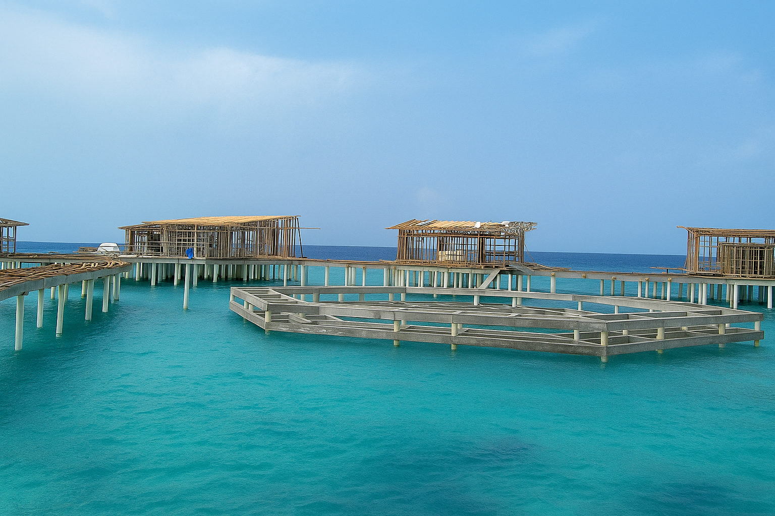 - Structural and foundational works for the overwater bungalows and connecting walkways