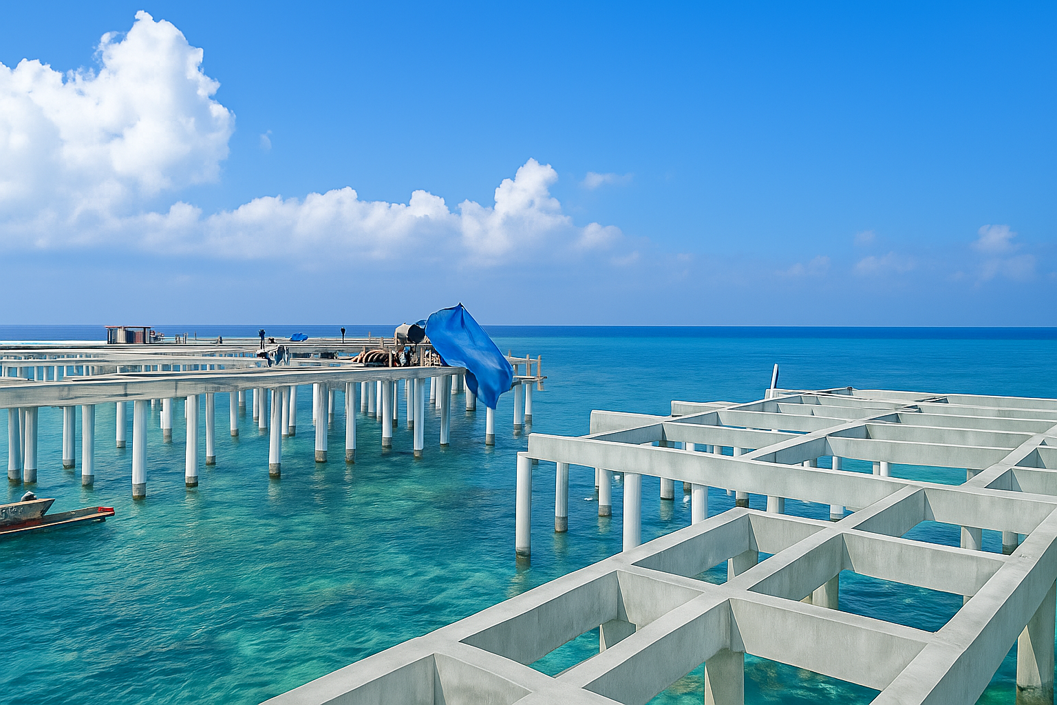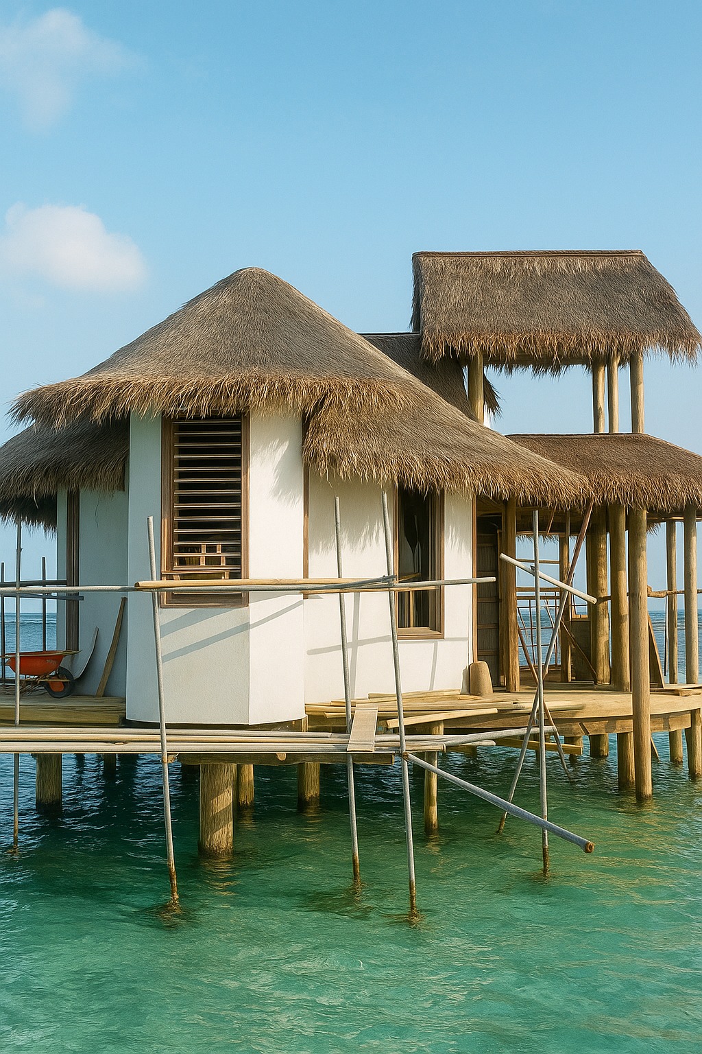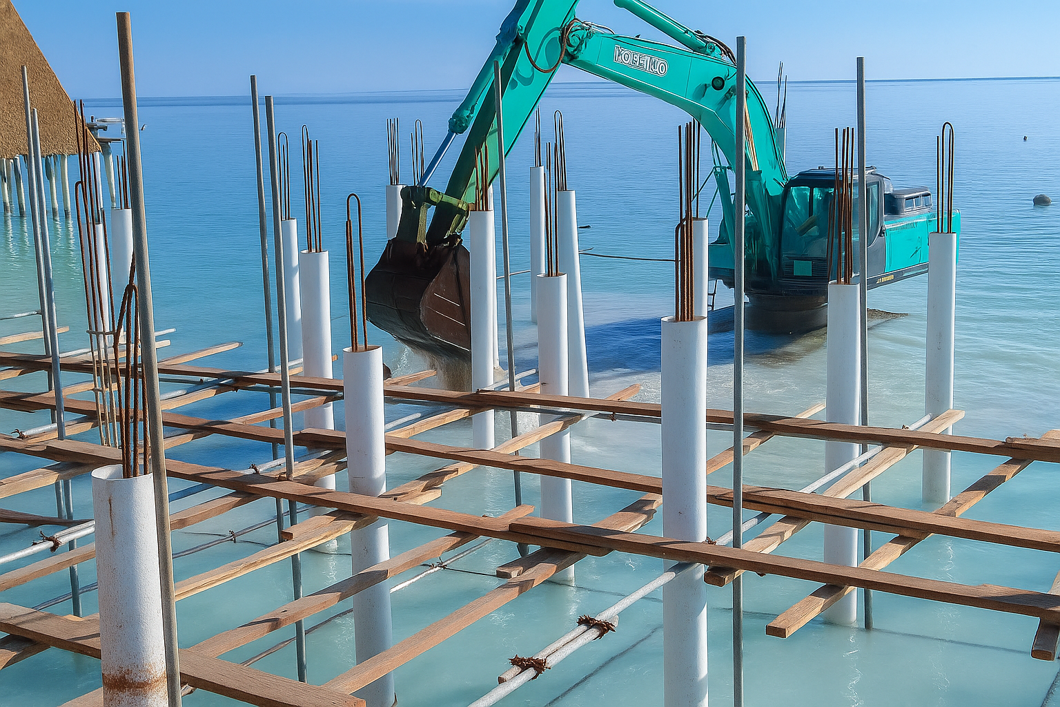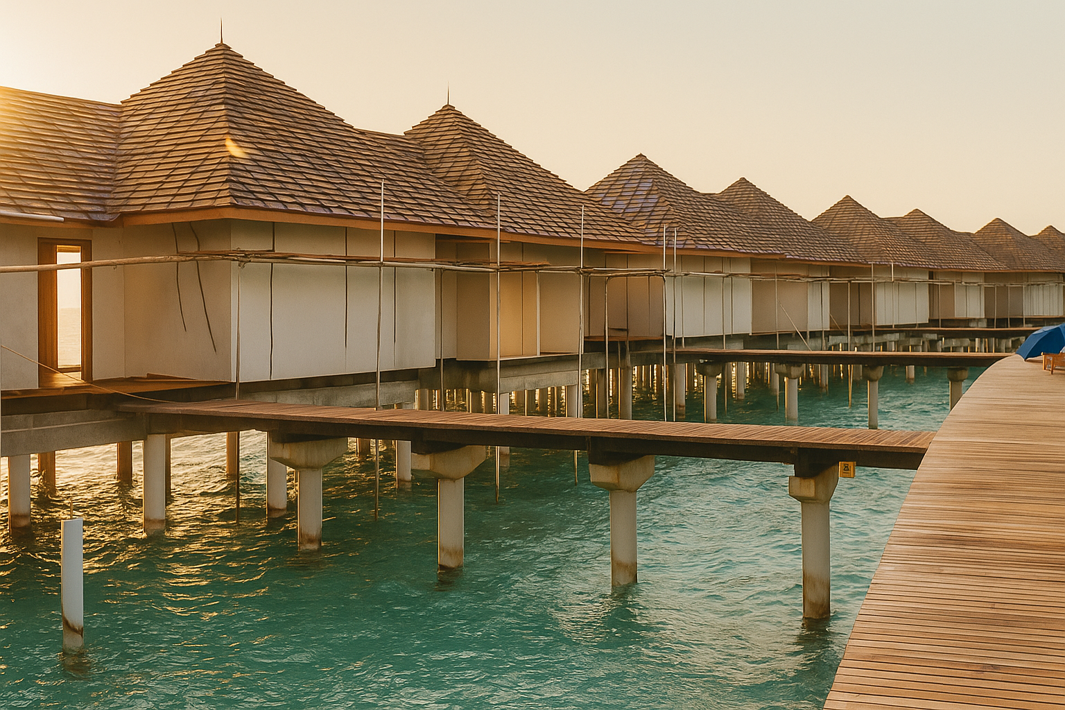 - Structural and foundational works for the overwater bungalows and connecting walkways