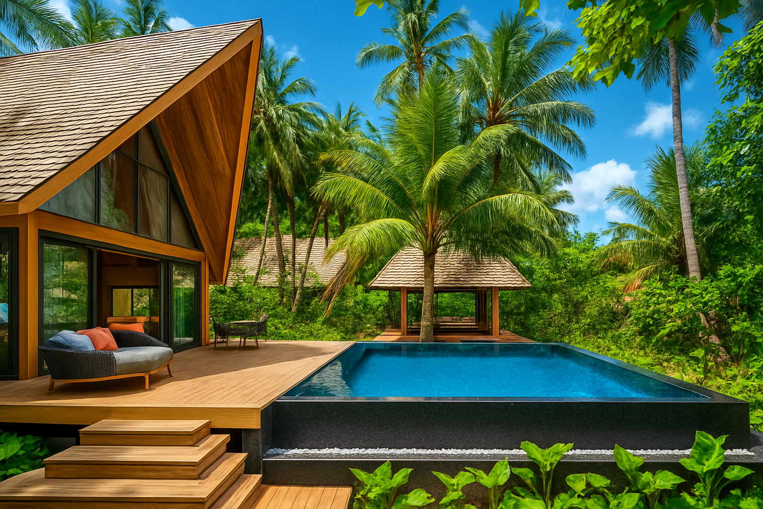 - Construction of swimming pools, both on land and overwater, built to luxury standards
